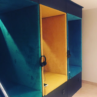 Capitonnage des cabines avec le velours Tribeca. Les coussins sont à suivre.. mais sieste interdite, vous serez là pour travailler !!